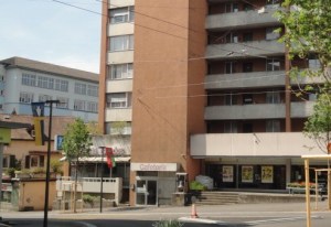 Winter 1954, Kirchackerschulhaus gegen die Zentralstrasse